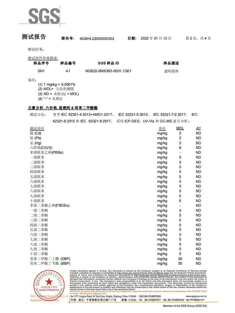 SGS檢測報告