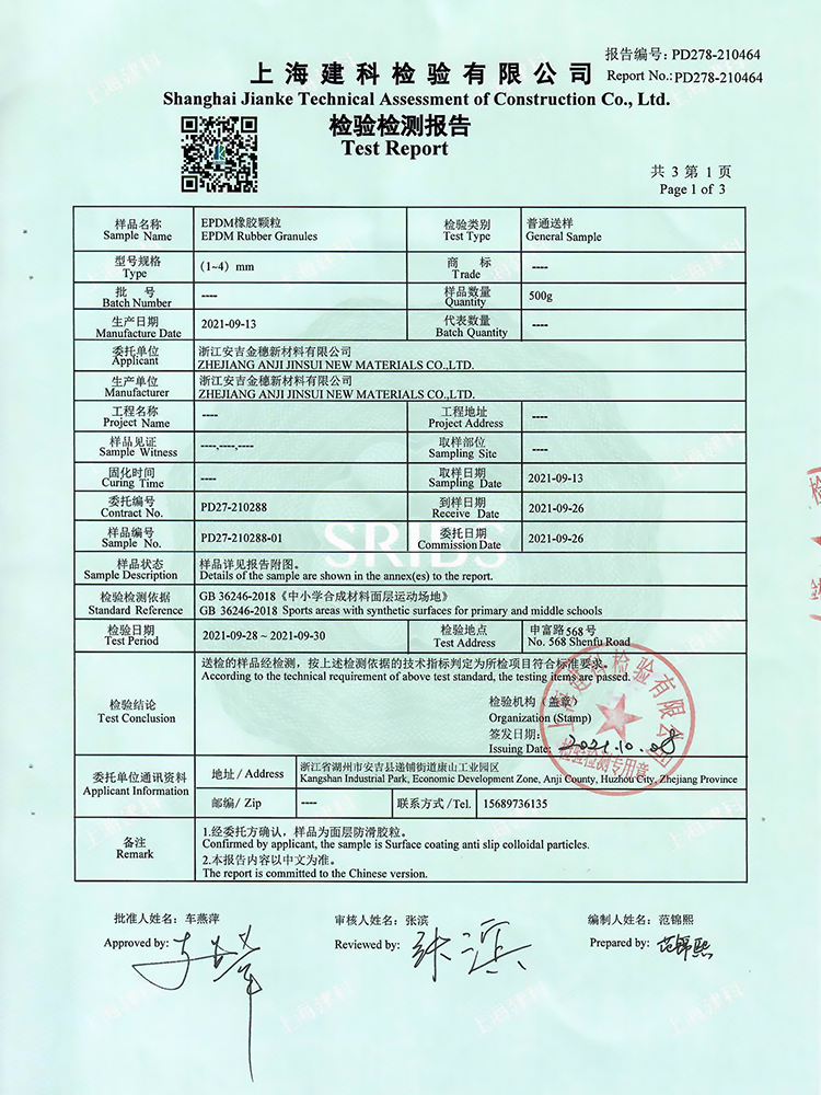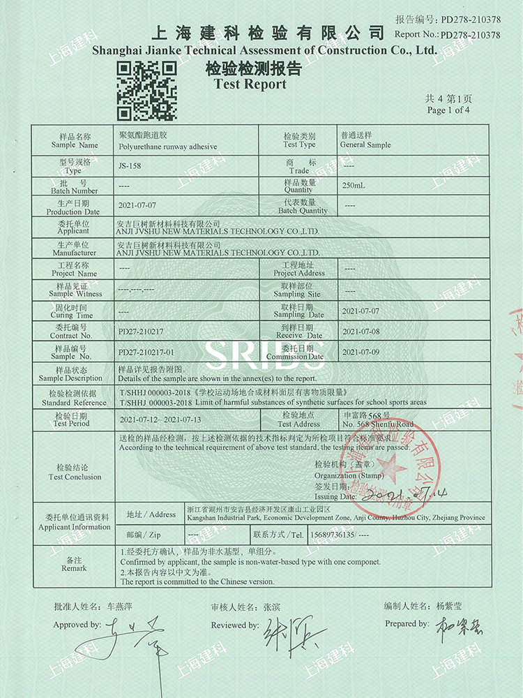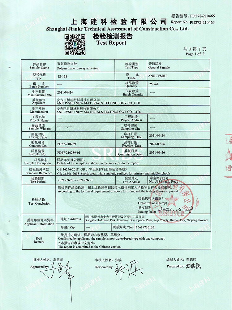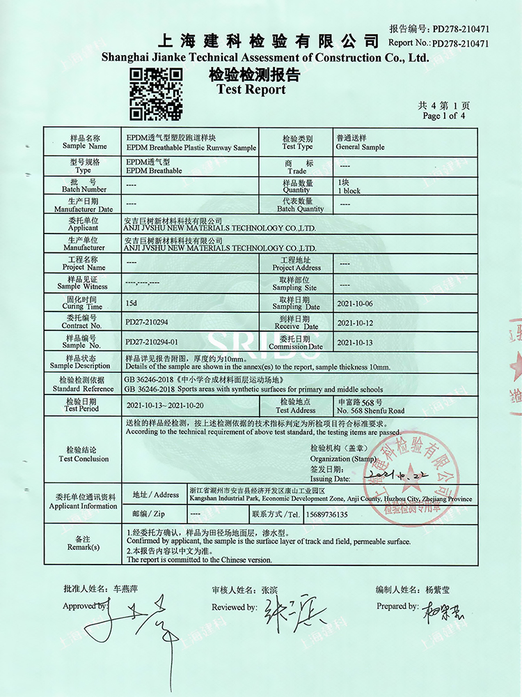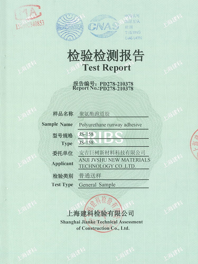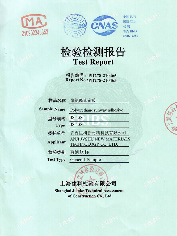 跑道膠新國標檢測報告合格