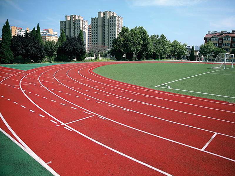 基礎(chǔ)平整清潔→涂刷防水底涂→跑道PU料刮涂彈性層→噴涂面層→劃線