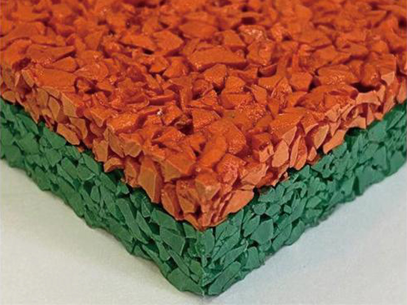 EPDM運(yùn)動(dòng)場(chǎng)地是一種高安全地面的塑膠地面,由兩層結(jié)構(gòu)組成,底層是由EPDM橡膠環(huán)保顆粒與單組分聚氨酯膠水均勻混合機(jī)械攤鋪而成,面層用彩色EPDM顆粒與面膠手工壓平鋪裝,是幼兒園、中小學(xué)、小區(qū)、游樂場(chǎng)、公園等活動(dòng)場(chǎng)所的必備安全運(yùn)動(dòng)場(chǎng)地。